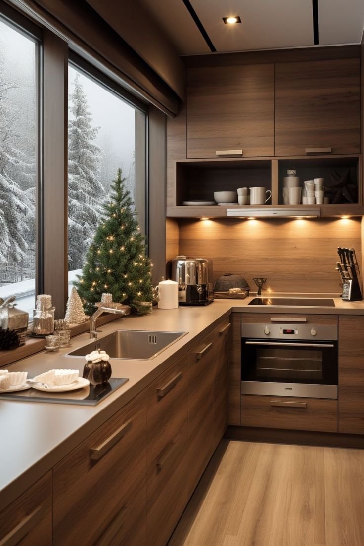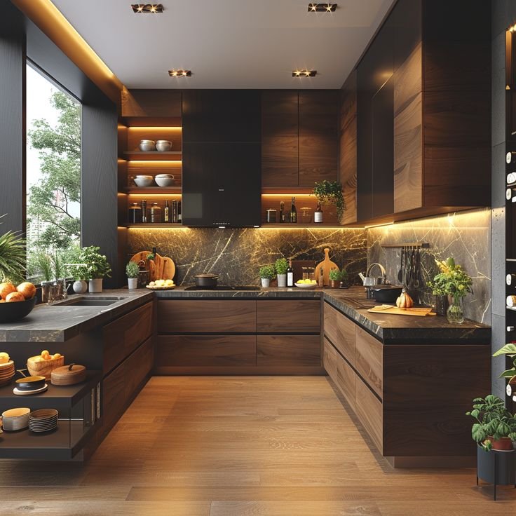 The furniture is equipped with hinged and roll-out drawers, compartments for dishes and cutlery, open shelves for placing spices and accessories. Often these are modular designs — the configuration and equipment is selected according to an individual order.